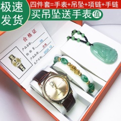 翡翠玉石观音吊坠送金表情侣手表男女表纪念毛主席老年人会销礼品