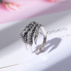 925纯银戒指男霸气潮人个性戒指男生鹰爪指环女时尚开口戒情侣潮