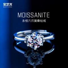 莫桑钻戒指女士925纯银永恒六爪克拉结婚指环女友情人节钻戒礼物