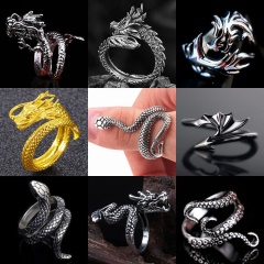 s925银中国风开口戒指男士单身霸气龙纹指环复古嘻哈泰银潮男个性