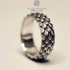 s925纯银龙鳞逆鳞戒指嘻哈男潮复古霸气个性简约百搭活口创意指环