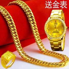 越南沙金手表金项链电镀金首饰男链久不掉色毛泽东纪念石英金表送